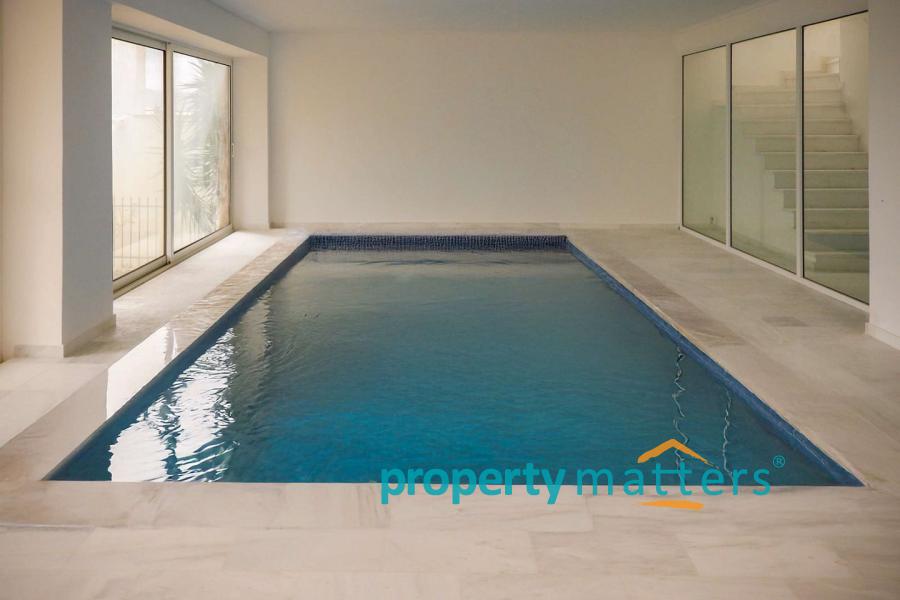 10 meter indoor heated swimming pool, with dehumidifiers, that leads to the garden, allowing for open air use during summer months