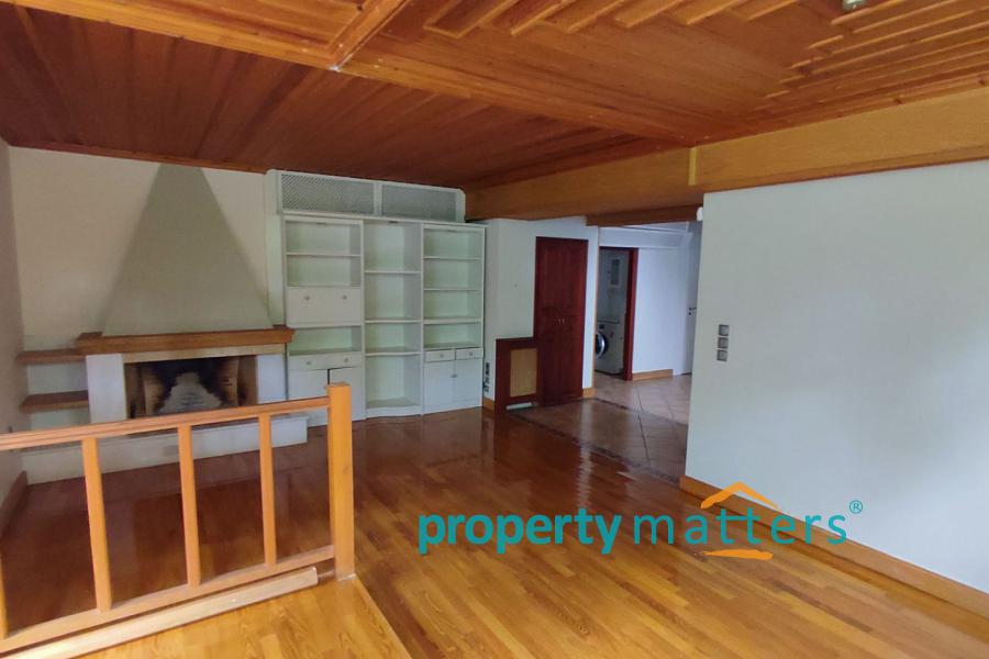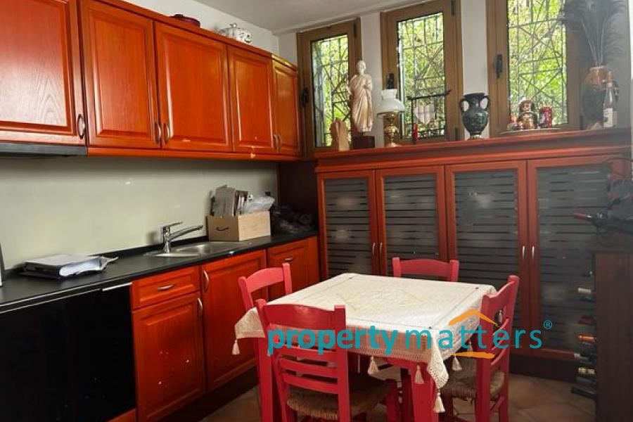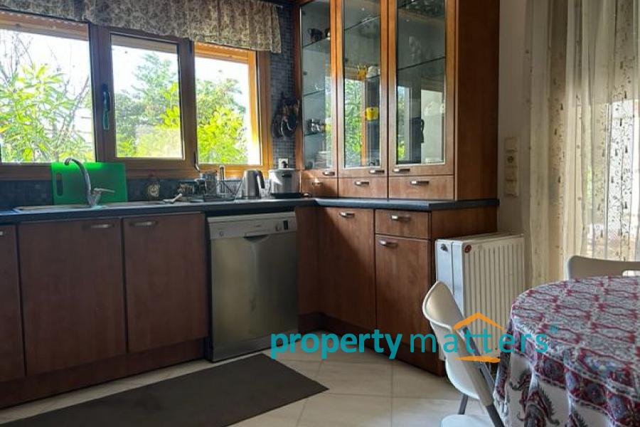 Ισόγειο 113 , 99 τ. μ. , με ωραίο καθιστικό με τζάκι, δεύτερο σαλόνι που έχει έξοδο στον κήπο , τραπεζαρία, κλειστή κουζίνα με έξοδο στον πίσω κήπο, γραφείο ή υπνοδωμάτιο , w. c επισκεπτών.