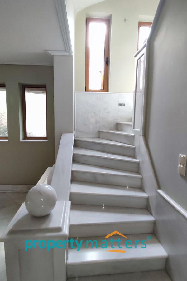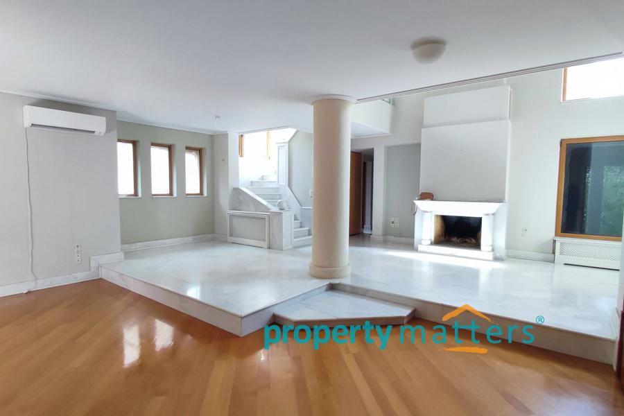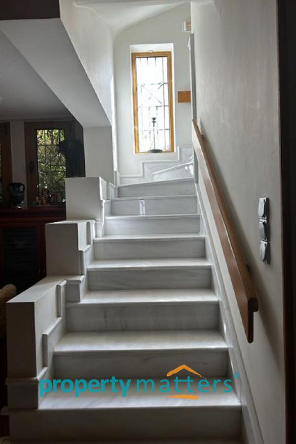 Αρχοντική Μεζονέτα 325,81 τ. μ., με εξαιρετικής ποιότητας υλικά κατασκευής, έναντι πάρκου , 3 επιπέδων, με επιπλέον βοηθητικούς χώρους 58 , 36 τ. μ. ( γκαράζ & αποθήκη), κατασκευής 1996 .
