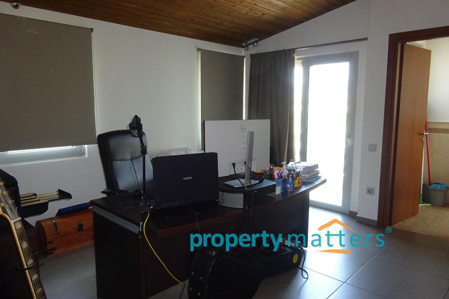 Στη σοφίτα υπάρχουν ένας γραφειακός χώρος μεγάλος που μπορεί να λειτουργήσει και για υπνοδωμάτιο και ένας ξεχωριστός χώρος ως υπνοδωμάτιο με ντουλάπες. Υπάρχει και ένα μπάνιο με μπανιέρα. Η σοφίτα βγαίνει σε δώμα ιδιοχρηστο με πολύ ωραία θέα ως τον Υμηττό.
