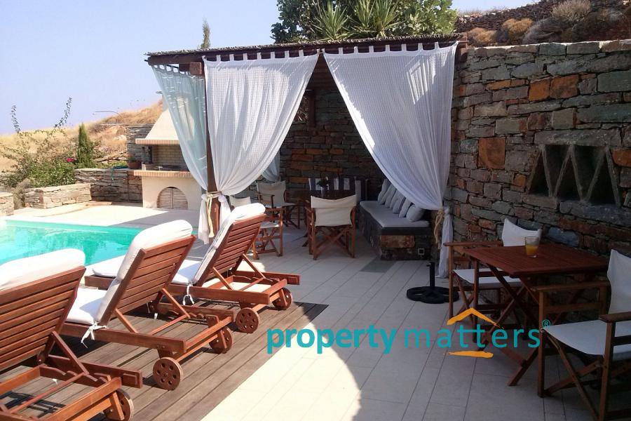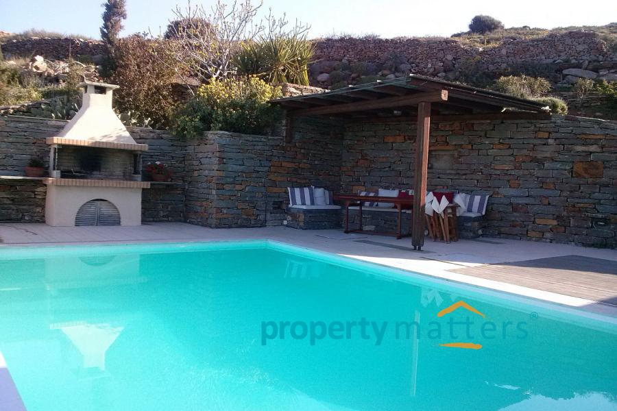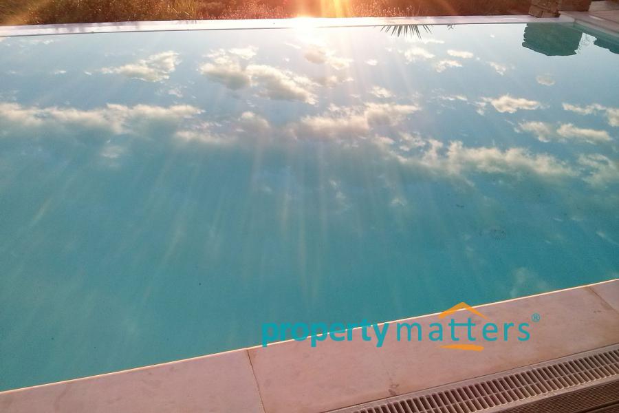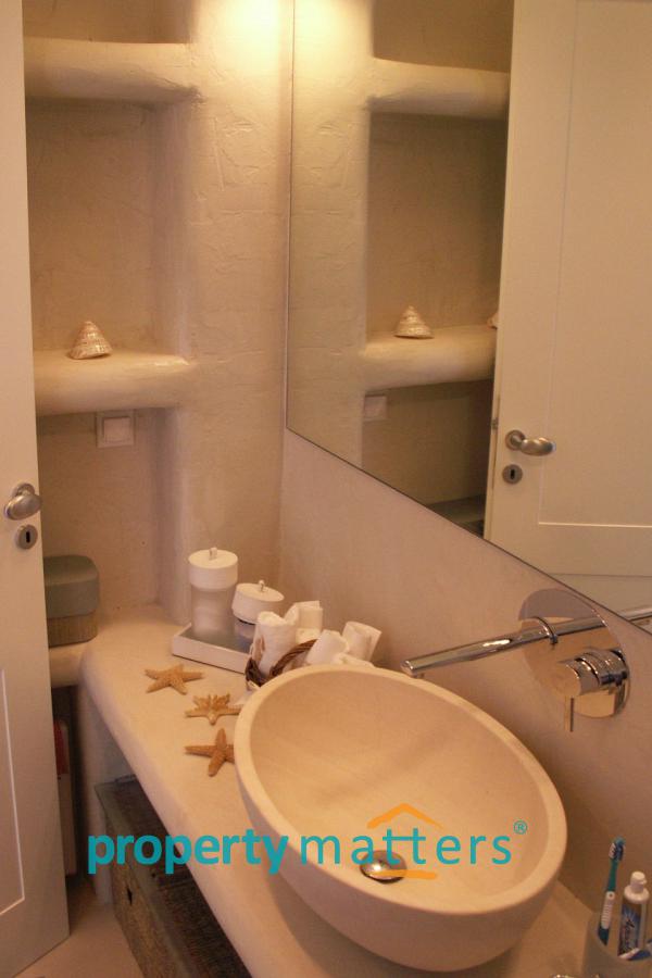 On the first floor there are two bedrooms with a bathroom. In the lower lever there are two bedrooms with a bathroom. In the garden there is a swimming pool, a BBQ, covered seating and dining area and covered parking for two car.