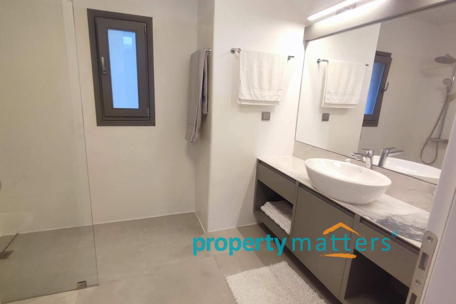 On the lower level, the villa reveals three additional bedrooms, each with its own bathroom and direct access to the pool (50sq.m.) area, ensuring complete comfort and privacy for guests.